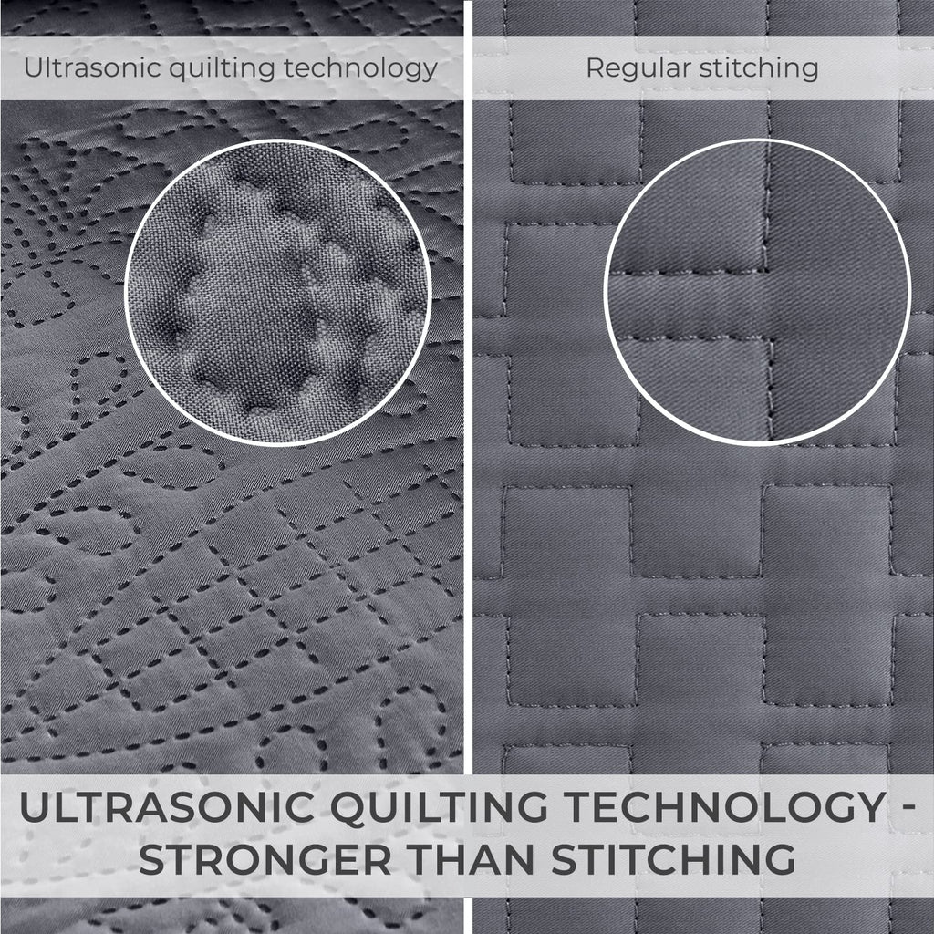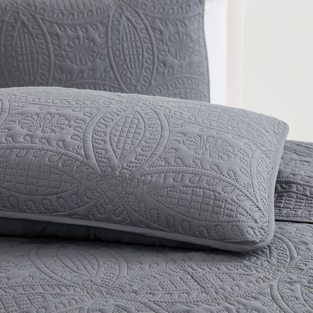 - Oversized - King 3 piece bedspread set. Two shams (20"x36") and a bedspread (111"x106"). Easily cover all sides and end of your bed, even with extra layers of padding! Forget those bulky spreads! This Lightweight bedspread wraps you in luxurious warmth for your most restful night sleep