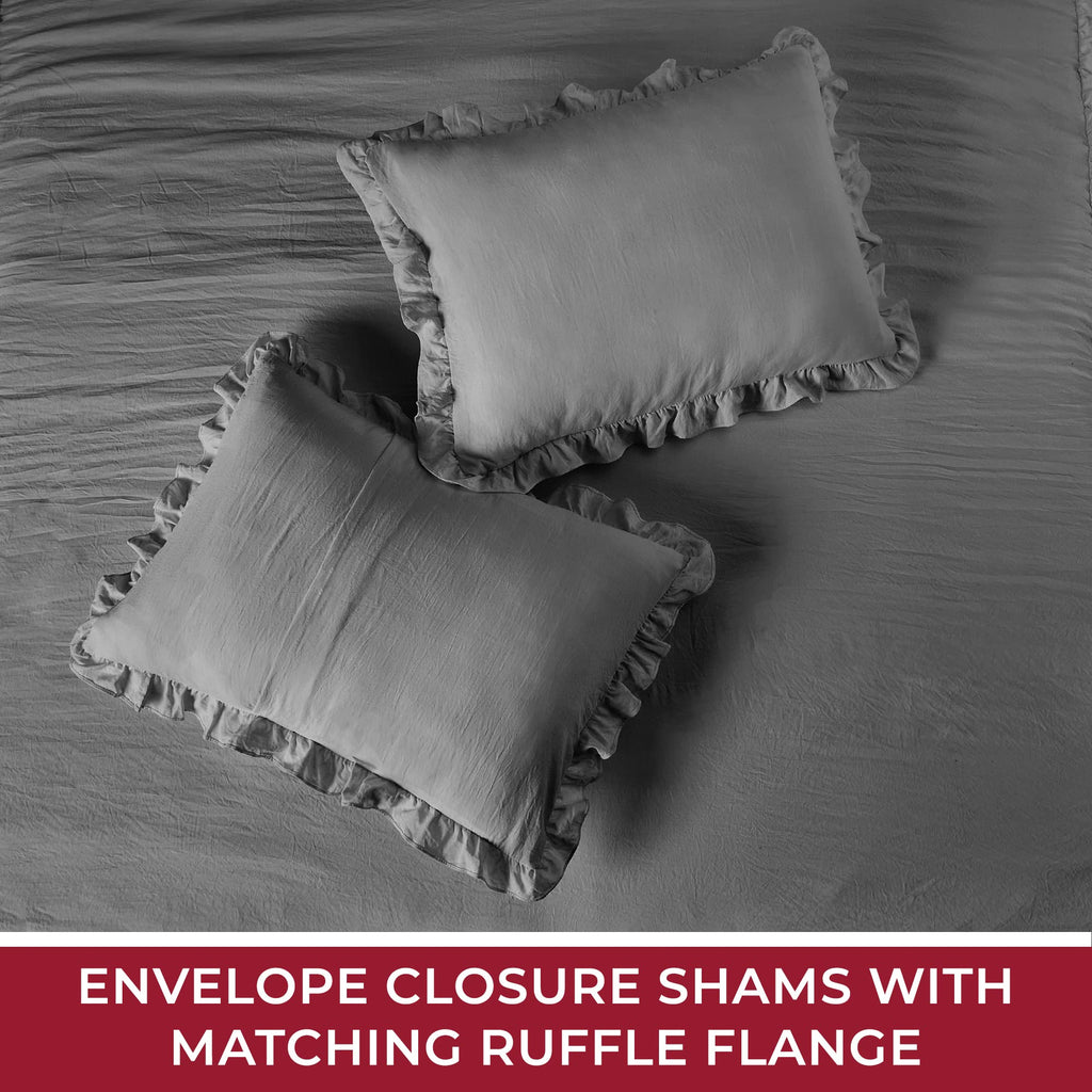 - Full Coverage, No-Slip Shams – Envelope closure keeps the pillow tucked into case and hidden from view. Generous 2" ruffle flange around the sham edges completes the twin bedding set for a romantic look and feel.
