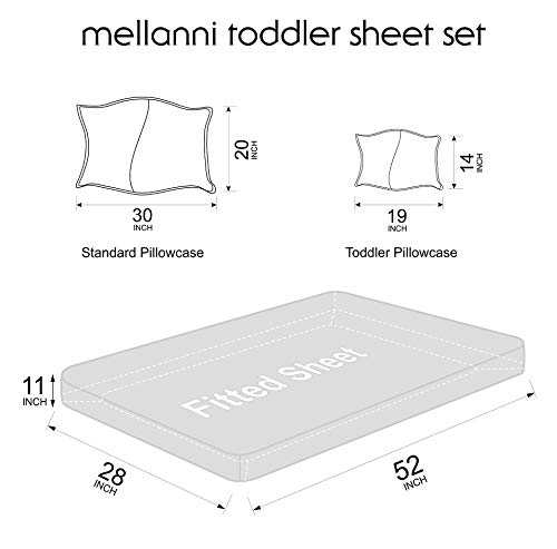 - Highest Quality Brushed Microfiber and workmanship, so you know it Lasts! Fitted sheet with elastic all around ensures the sheet stays put - not just the corners like other sheets (28"x52" with 11" pocket), toddler pillow case (14"x19") and standard pillow case (20"x30")