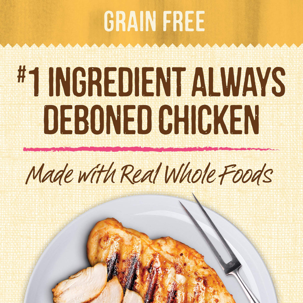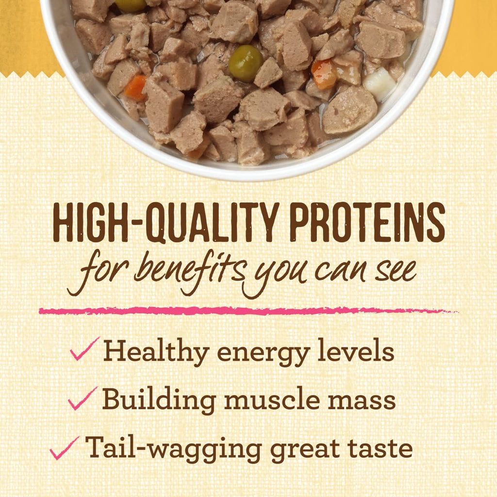 - Real deboned chicken is the first ingredient in this premium wet dog food that is comprised of real meat and high protein that helps small breed dogs maintain lean muscle mass and energy levels