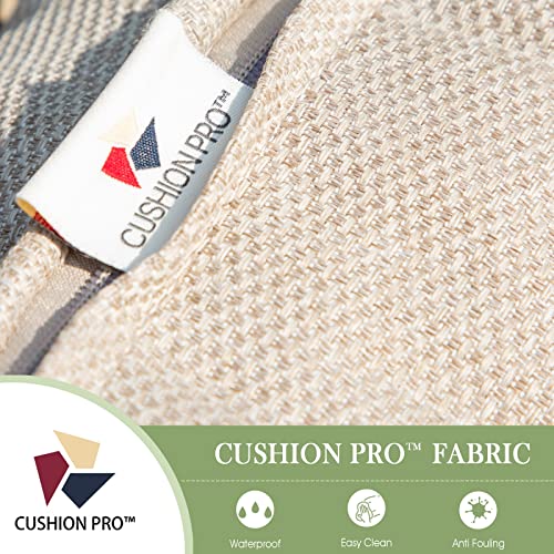 - CUSHION PRO Technology Cushion Fabric: Equipped with high density sponge, 4" thick seat cushions would be more comfortable and not easy to deform. All the cushions are crafted from updated waterproof fabric processed by CUSHION PRO technology, which is easy to maintain. High backrest providing excellent support for your body and ensuring long-lasting comfort.