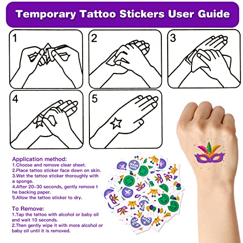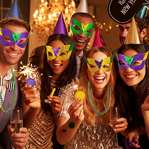 - Mardi Gras Party Favors Set: Includes 6 vibrant sequin masks, 72 fun temporary tattoos, 24 colorful bead necklaces and 66 shiny coins. Perfect for parties, parades and celebrations.