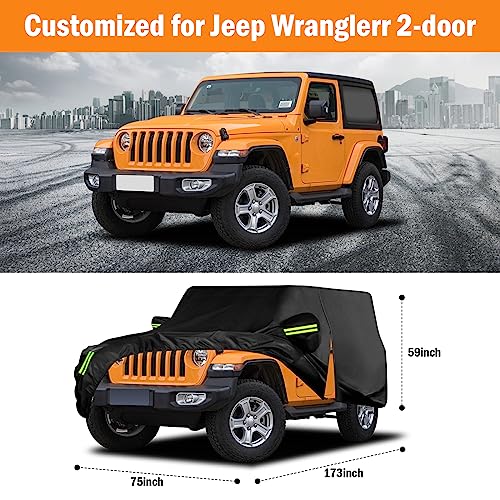- 【Wind-Resistant Design】The car cover waterproof all weather has been specially designed to resist strong winds. ① Equipped with two bungee cords, which only take a few seconds to tie to the tires on both sides, it securely covers the front and rear of the car. ② There are specially designed windproof straps at the bottom to pass through the car's middle to ensure that the cover is not blown away. ③ The adjustable elastic hem makes it easy to adjust the size and fix the cover to the car body.