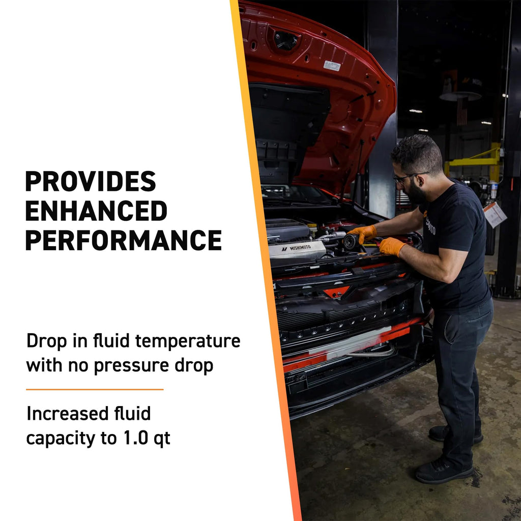 - 37-row stacked plate fluid cooler provides 265% increase in core volume compared the stock 9-row transmission cooler