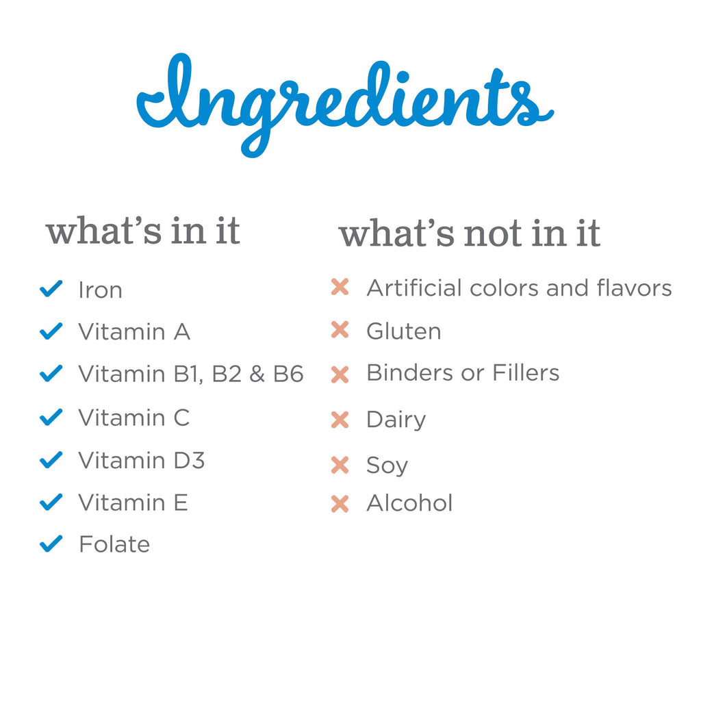 - Packed with Essential Nutrients: No matter how you're feeding your baby, a multivitamin may help ensure they're getting the nutrients they need every day. Just one serving provides 100% daily values of vitamin C, D3, E, B1, B2, B6, and 10 mg of iron