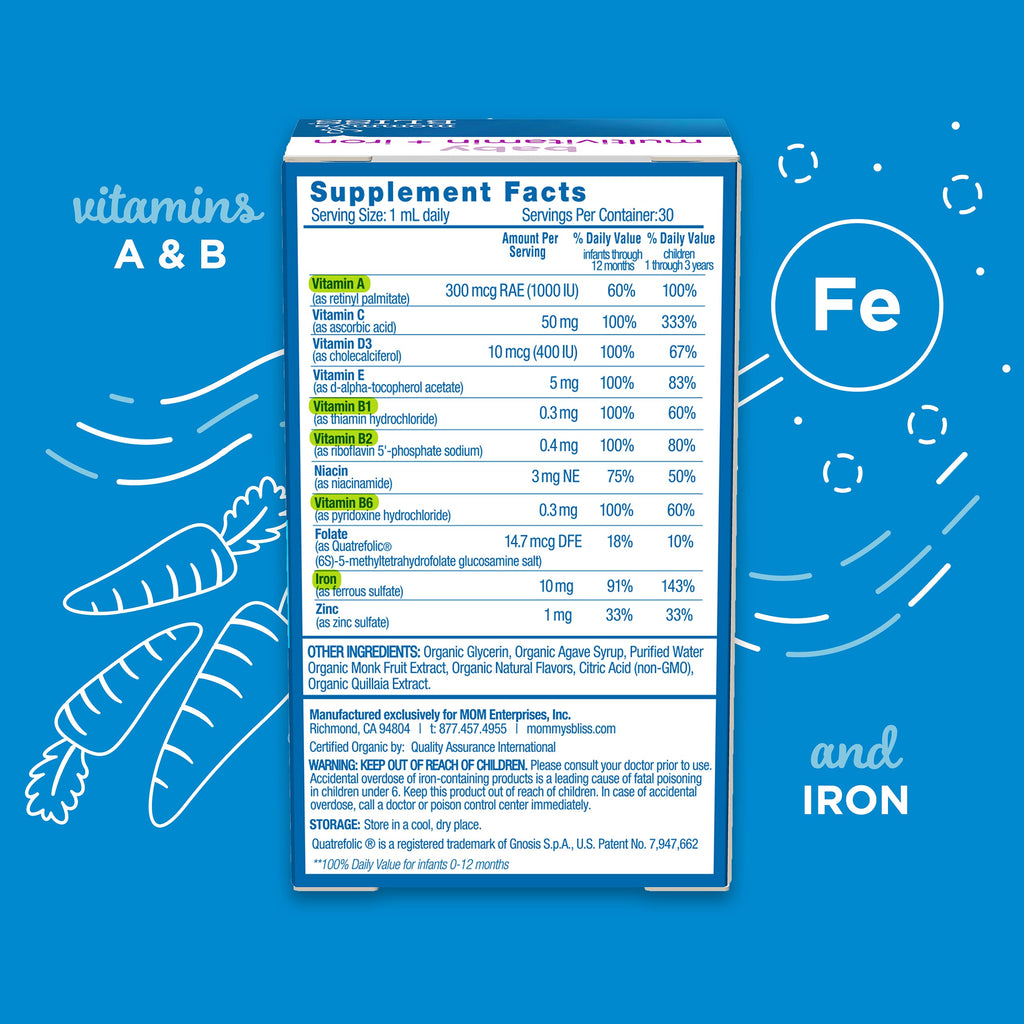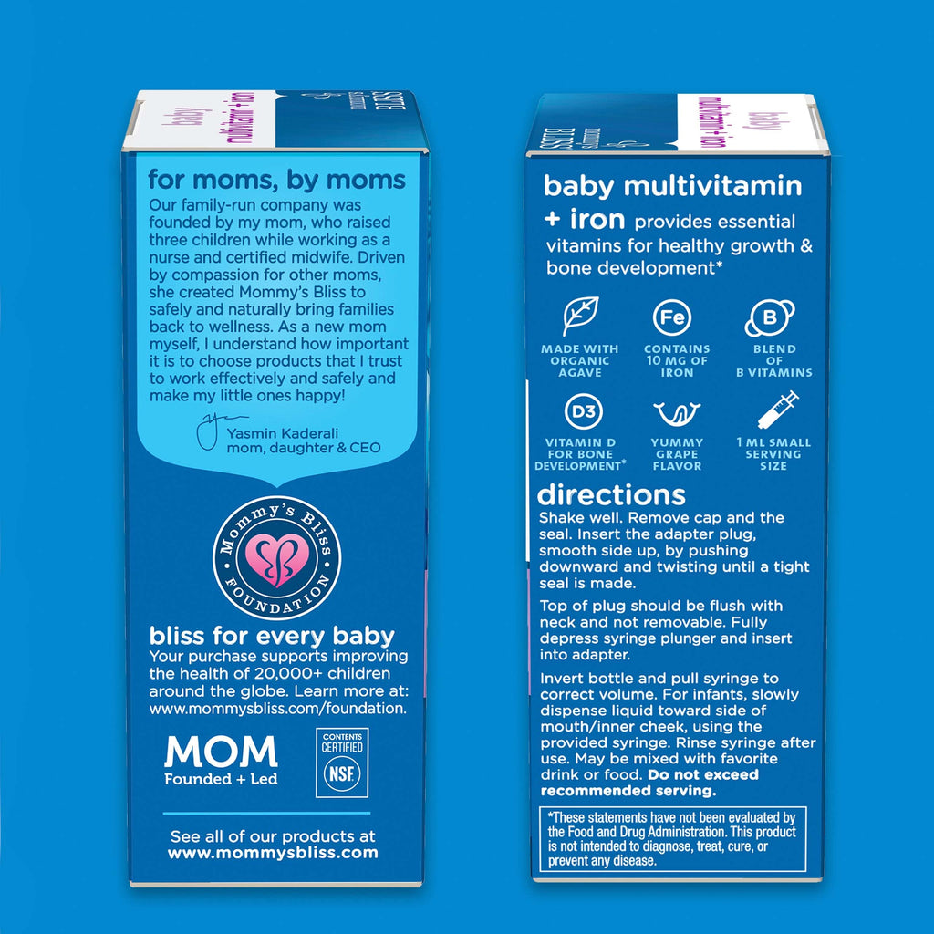Details: Mommy's Bliss Baby Multivitamin + Iron, Daily Essential Vitamins for Immune Support, Healthy Growth & Bone Development*, Age 2 Months+, 30 ml, Liquid