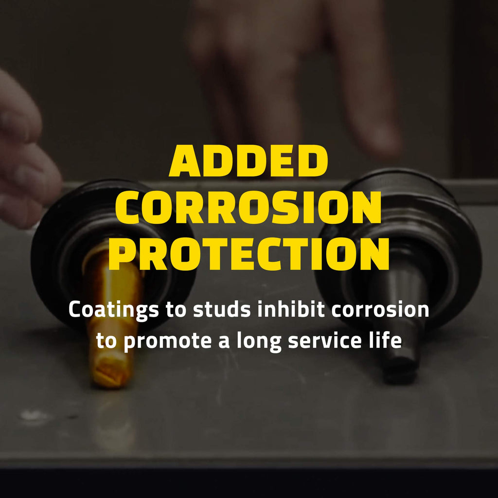 - ADDED CORROSION PROTECTION -- Coated studs and e-coated cast iron and steel control arms inhibit premature wear