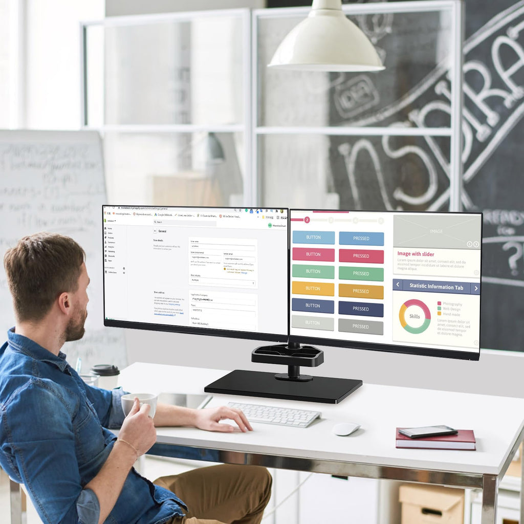 - Great Alignment: Upgraded integrated arm design ensures overall balance and stability. The unique design of the monitor holder allows that monitors can be shifted left and right along a 29" arm and ensures perfect alignment between two monitors. Ideal for desks against the wall or small workspaces.