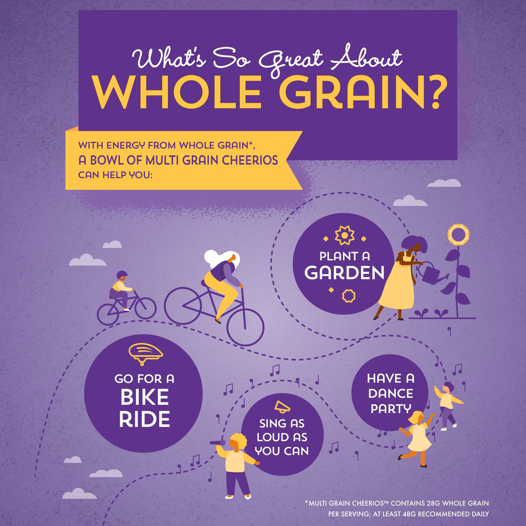 - Multi Grain Cheerios delivers the perfectly balanced combination of nutrition and taste with 5 whole grains and essential nutrition to help get you through the day.