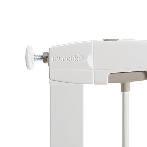 Details: Baby gates should make life easier, not harder. The Easy Close Safety Gate by Munchkin comes in an easy-to-open package and features a simple locking mechanism, no fiddling required. To close the gate, simply release the handle with a firm push and the gate will lock shut. There are also two bottom locks to allow greater control over how the gate opens, for better peace of mind. Ideal for use in doorways, stairways, and halls, this easy-to-use child gate stands 29.5" tall and adjusts from 29.5" to 35.0" wide. This package includes (1) 2.75" extension. Additional extensions can be purchased to fit openings up to 54". Suitable for children 6 to 24 months. Installation Note: This gate ships with a gap between the gate frame and the handles. This is not a defect. The gap will close once gate is properly installed. Safety Warning: Do not use this gate at top or bottom of stairs without using all four wall cups. For maximum safety, use four wall cups with sticky pads and screws provided when installing the gate in all locations. Stop using when a child can climb over or dislodge the gate. Never use a gate to keep child away from pool. If the gate is used at top of stairs, it must be placed on the landing above the top stair. When using at top of stairs, gate must open away from stairs. If the gate is used at the bottom of the stairs, place towards the front of the lowest stair. The safety barrier must not be fitted across windows. Ensure gate is attached between two clean structurally sound surfaces. Ensure appropriate fixings are used for drywall or wood or brick Installation Note :This gate ships with a gap between the gate frame and the handles. This is not a defect.The gap will close once gate is properly installed.
