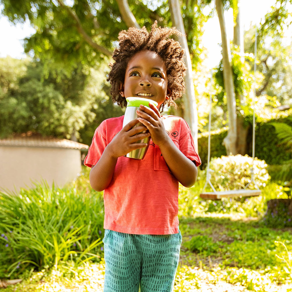 Details: Munchkin's Miracle stainless steel 360 sippy cup is here to "steel" your heart when it comes to sippy cups. Let's face it: toddlers are a messy bunch, especially when first navigating sippy cups. Now imagine a world in which drinks didn't spill at all-no, it's not a miracle- it's Munchkin Miracle 360 Cup. This premium insulated stainless steel sippy cup keeps liquids cool for fresh and cold toddler drinks all day. Light-weight stainless steel material is extremely durable and double wall design won't sweat or get hands cold. Patented 360 rim eliminates messes and supports kids' Dental health All at once because drinking from anywhere around the rim, like a regular cup, helps support normal muscle development in a child's mouth. Also includes matching cup lid to keep drinking edge clean on-the go. With no extra spouts, straws or pieces, the Miracle 360 Cup is easy to use and even easier to clean. We'll say Cheers to that. Suitable for children 12 months and up.