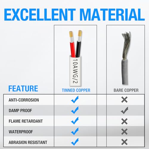 - EXCELLENT PVC JACKET: 2 Conductor 8 gauge wire features custom PVC insulation. Thicker insulation that effectively prevents wire oxidation, saltwater corrosion, and high temperatures. Ideal for use in marine and other harsh environments