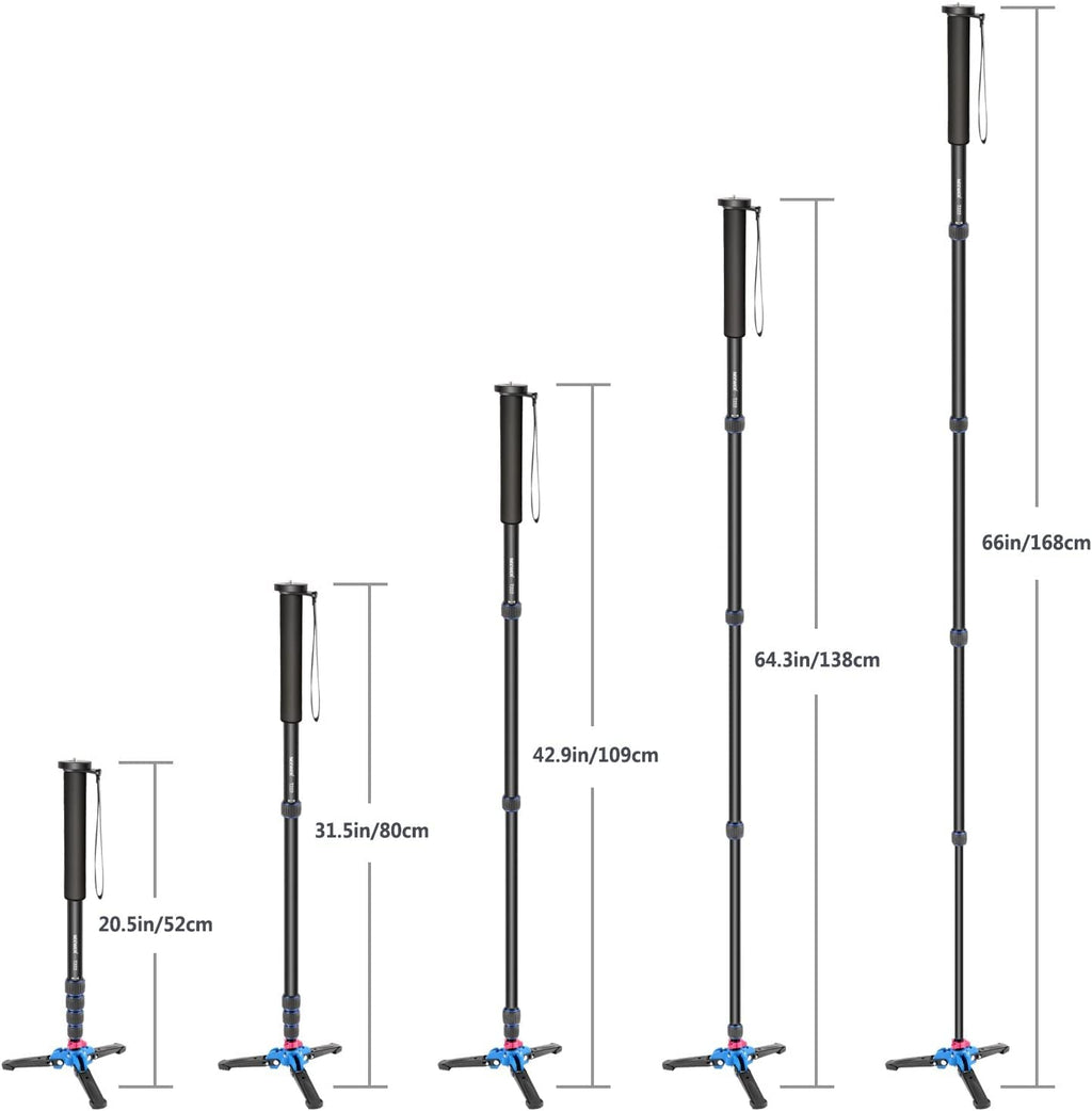 - Extendible monopolyle: The monopod can be extended to 66 inches/168 cm, folded to 20.5 inches/52 cm; The maximum load weight is 11 pounds/5 kg for optimal performance