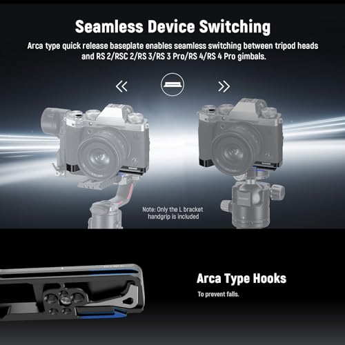 - 【Instant Equipment Switching】 Compatible with DJI RS4 RS4 Pro RS 3 RS 3 Pro RS 2 RSC 2 gimbals and endless tripod heads, the Arca type base with anti off hooks allows you to seamlessly transfer the camera from a stabilizer to a tripod for recording smooth videos