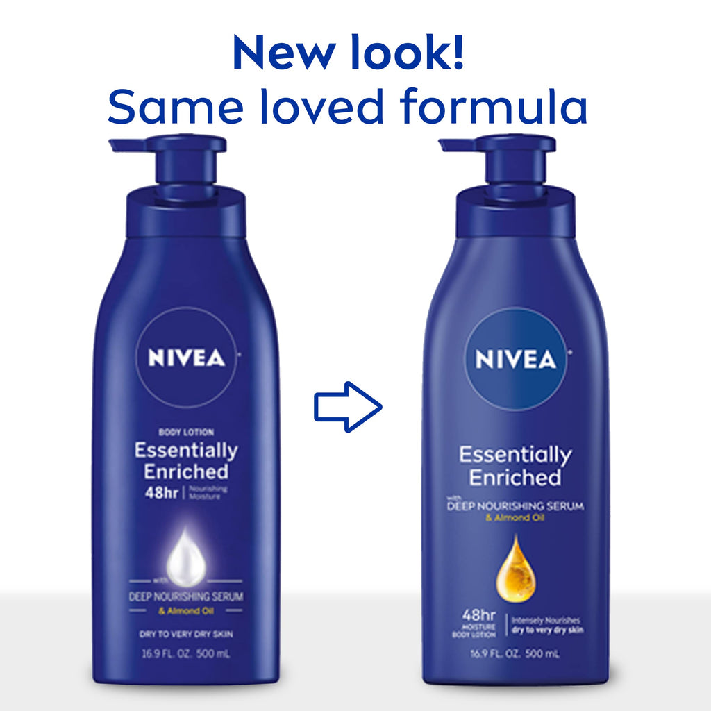 - Includes one (1) 16.9 fluid ounce bottle of NIVEA Essentially Enriched Body Lotion