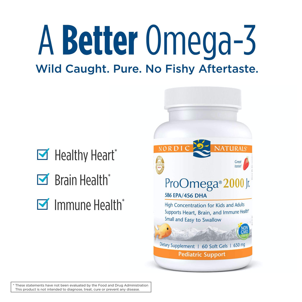 - DOCTOR-RECOMMENDED FORMULA - Nordic Naturals ProOmega 2000 Jr. features our highest concentration omega-3 fish oil. This formula meets the daily recommended dose suggested by the American Heart Association to support a healthy heart.