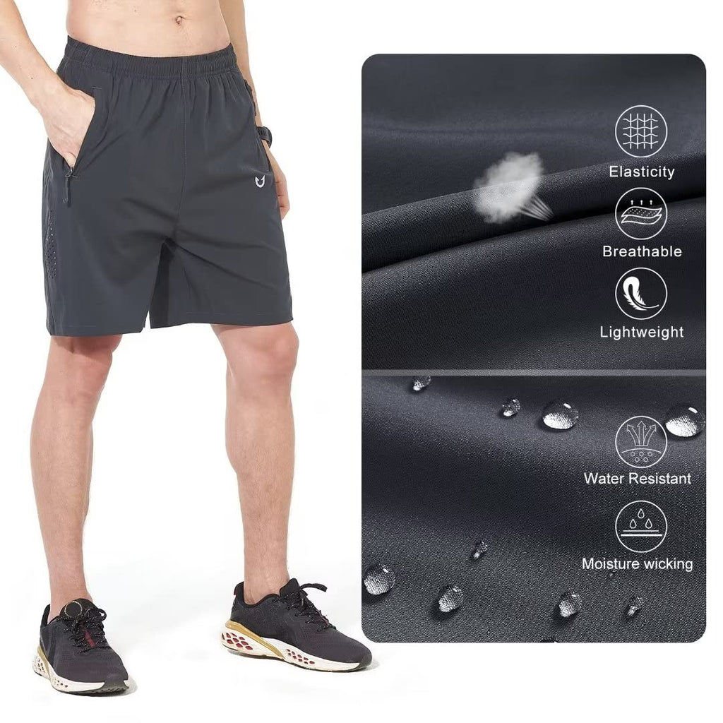 Details: NORTHYARD High-performance Men's Athletic Hiking Workout Gym Sports Shorts Running Inseam:7" Premium Fabric:Super 4 Way Stretch/ Moisture Wicking/ Fast Drying/ Lightweight/ Breathable-Men's athletic hiking shorts is made of materials that allow airflow and prevent hot air from getting trapped next to your skin.The shorts fabric is breathable and quick dry, dries fast so you won’t get soggy. A blend of polyester and spandex can be very durable, abrasion-resistant, and stretchy enough to allow for better mobility Personalise Features: and ventilated side design for added breathability in hot weather. Elastic waistband with drawstring for customized fit, flatlock seams reduce chafe for additional comfort and ease of movement.The small reflective strips on the back make you stylish and safe in low light Fabric offering 50+ UPF Water Resistance & UPF 50+: Water resistant fabric offers protection against liquids and dries quickly to stay dry and cool.Stretch fabric build-in UPF 50+ let you move comfortably and provide great protection against harmful ultraviolet rays 3 Zippered pockets These men's track running shorts feature conveniently placed and easily accessible pockets so that you can quickly store and retrieve your hiking accessories. The 2 side and 1 back pockets with zipper offer easy storage for your essentials and are also deep enough to prevent the items from falling out during activities. Versatile:NORTHYARD workout gym training shorts are suitable for various occasions such as hiking, walking around town,travel, fishing, workout, biking, golf sports and home casual wear ; suitable for different conditions and environments