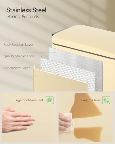 - STURDY STAINLESS STEEL CONSTRUCTION: Made from high-quality stainless steel, this trash bin is rust-proof and fingerprint-resistant, ensuring long-lasting use and easy cleaning. No need to worry about unsightly stains or corrosion!