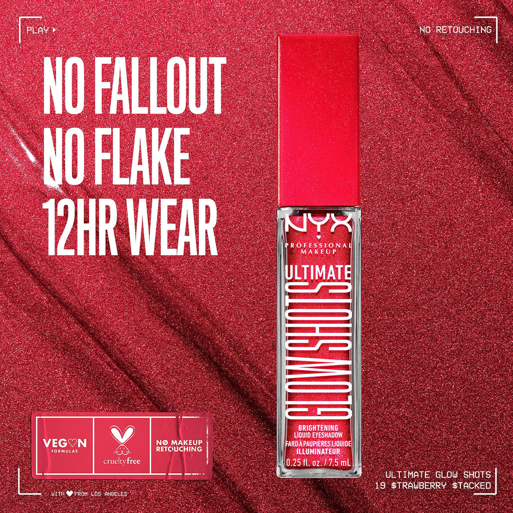 Details: Introducing brightening liquid eye color in one shot; our new innovative liquid eyeshadow gives you all shimmer, no glitter, and ultimate glow. This lightweight, buildable formula features no flake, no fallout, and up to 12 hour wear so you can glow wherever you go! step into the spotlight with liquid luminosity in a wide range of wearable and fun shades! wear alone, under powder eyeshadow, or mix and match to create your own pro-level looks. confident color with an ultra-comfortable second-skin feel melts onto skin for vivid luminosity. formulated with vitamin c! take a shot of our fruit-inspired shades to boost your daily glow. get a healthy dose of brightening color in one easy swipe!