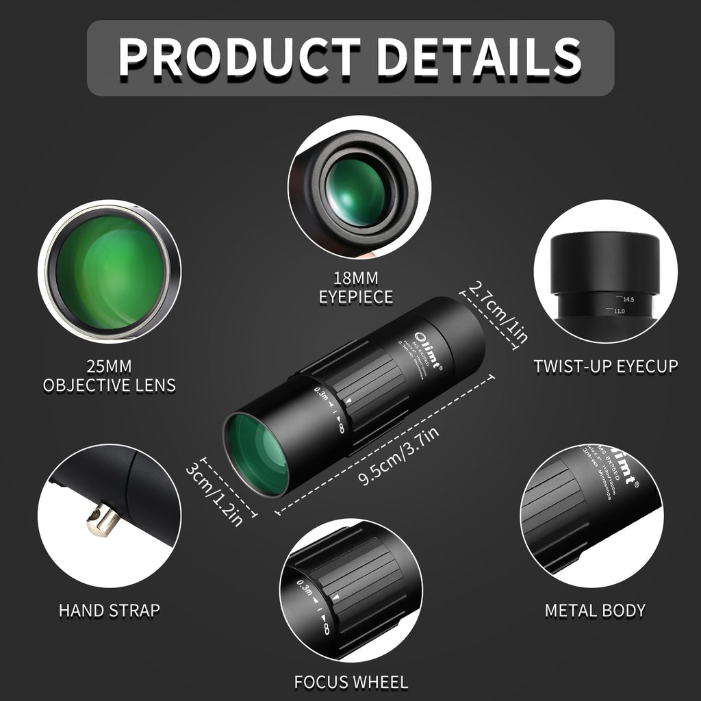 - PREMIUM OPTICS: 8x25 monocular telescope with fully multi-coated ed lenses, BAK-4 prisms, extra-low dispersion, exceptional clarity and high color reproduction