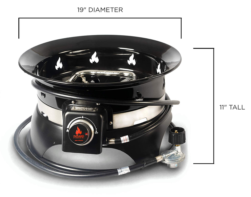 Details: Perfect for outdoor recreation, the auto-ignition Outland firebowl premium adds ambiance to any outdoor activity and offers the easy alternative to traditional labour intensive campfires. This 19" diameter certified fire pit is safe to use during most campfire bans, you can bring the warmth and experience of a cozy campfire with you anywhere outdoors. Our 58,000 btu fire bowls are constructed from high-quality steel with a protective powder coating and enamel finish for long lasting durability. Features of the outland firebowl premium include stainless steel burner & fasteners, chrome knob with rubber comfort-grip, and a 1 year manufacturer's limited warranty on all products. Outland living is committed to consumer safety and satisfaction; all of our propane fire pits are CSA approved. Selecting a fire pit with an accredited certification ensures not only your safety has been considered but also the design and manufacturing standards have been approved through independent expert testing. in most instances burning a propane fire pit without CSA or UL certification during a burn ban is prohibited. sit back and relax knowing that your outland firebowl premium accurately performs at the 58,000 btu output advertised while exceeding safety standards. The outland firebowl premium uses a standard 20 lb (5 gallon) propane tank (not included) and burns clean and smokeless, Giving off enough heat to enjoy with family and friends anywhere outdoors. New CSA approved natural gas conversion kit 785 and outland carry bag 760 now available separately!