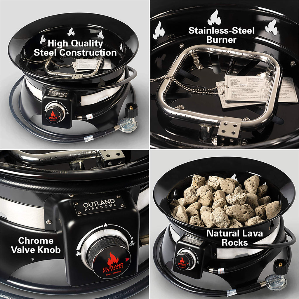 - ✓ SIGNATURE OUTLAND LIVING QUALITY: Durable high quality steel construction with protective enamel finish for dependable longevity; superior stainless steel burner, fasteners and contemporary decorative belt. Outland Living has outdoor living perfected so you can create the perfect ambiance to share stories and good times. Make new memories with family and friends, in comfort and style anywhere outdoors, with the Outland Firebowl Premium propane fire pit.