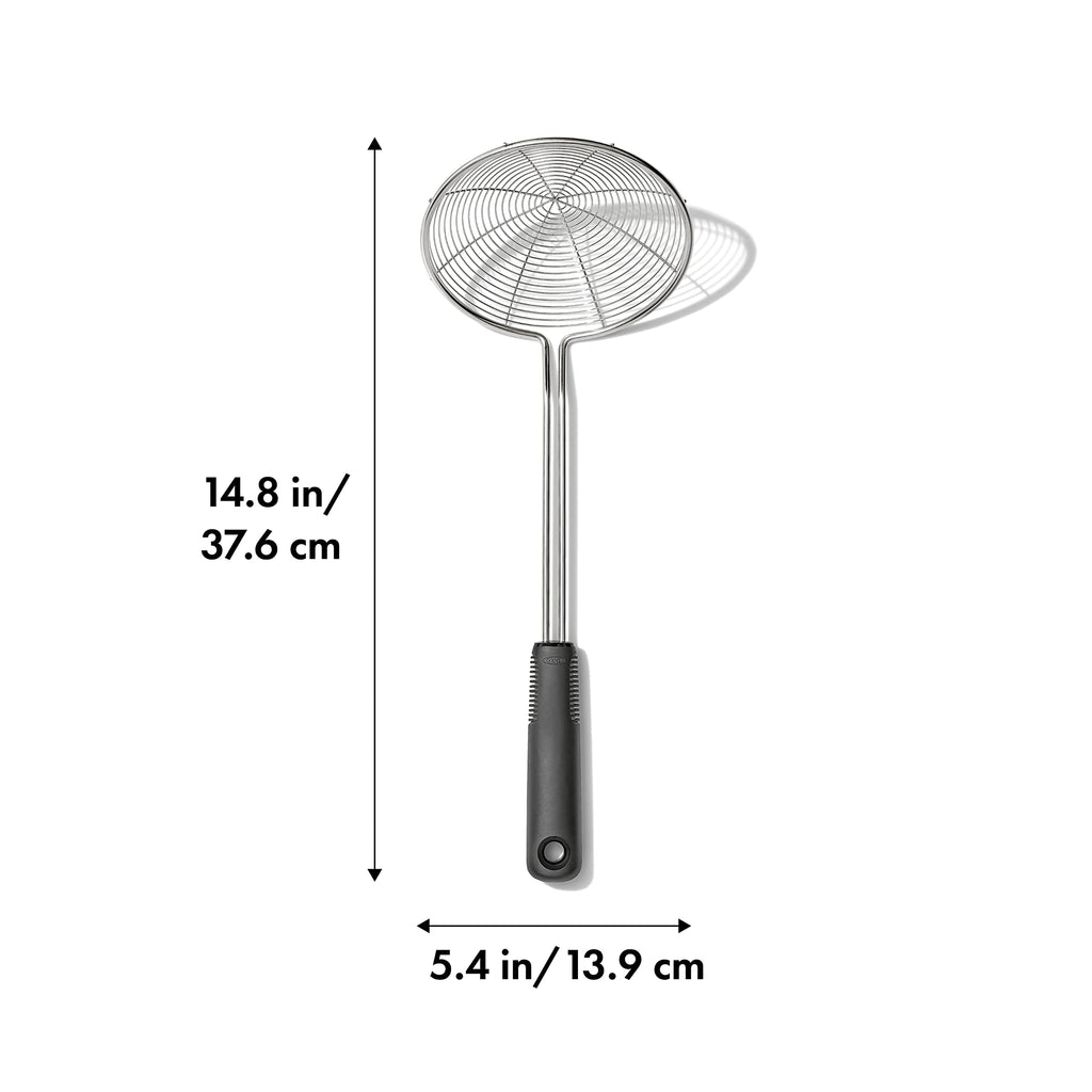Details: Whether you’re boiling, blanching or frying the OXO Good Grips Scoop & Strain Skimmer is the perfect tool to remove pasta, vegetables and pan or deep-fried foods while leaving all liquid behind. Featuring a wire coil design that ensures even the most delicate of foods won’t be damaged, the Skimmer’s deep, open basket is constructed for safe and efficient straining. An upgraded longer, angled handle and soft, non-slip grip enhance the Skimmer’s safety by keeping hands far away from hot oil or water.