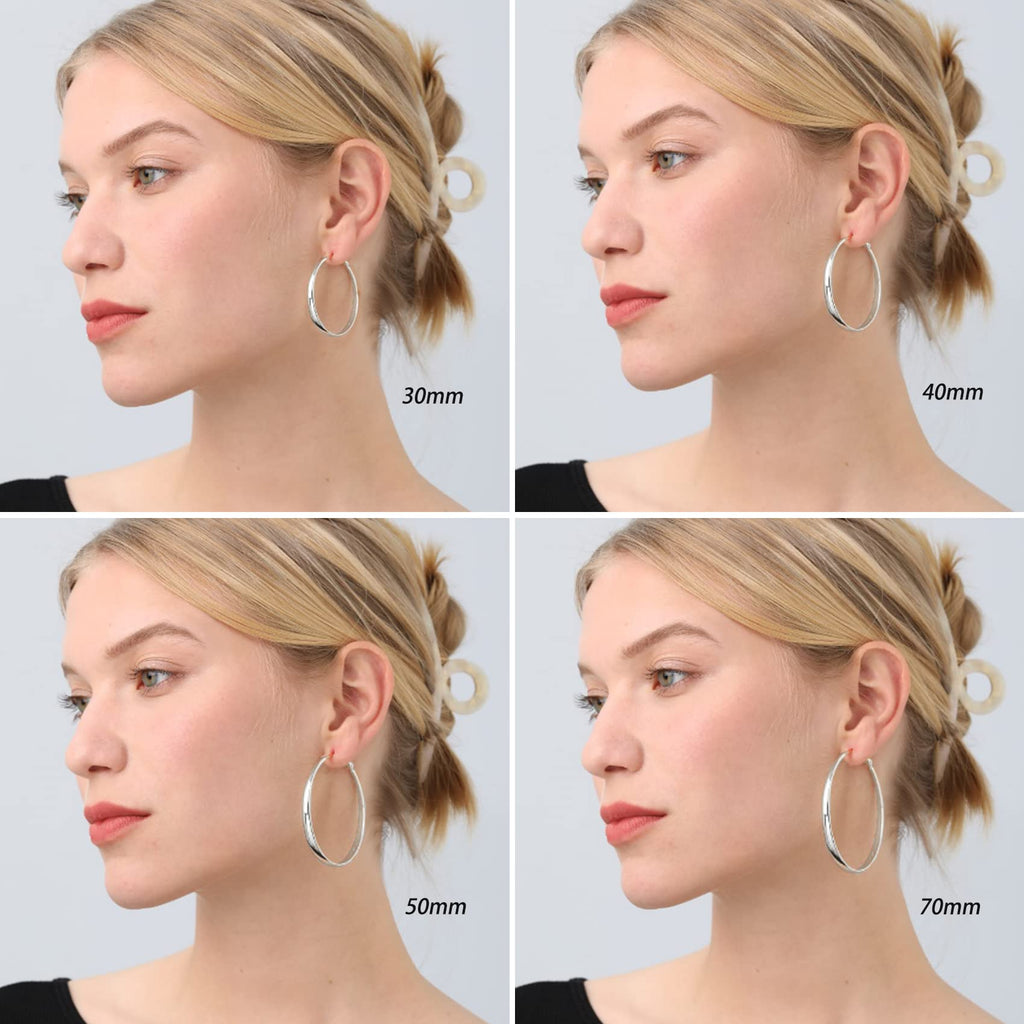 - 💕Easy to Wear & Take Off💕This sterling silver earrings hoops is very flexible and the secure clip-top design makes it easy to open and close.Large hoop earrings design is Sleek and Modern yet Classic and Elegant Style.sterling silver hoop earrings diameter: 30mm/40mm/50mm/70mm,Different sizes to meet your different daily needs, these large silver hoop earrings for women are perfectly pair with any outfits whether at work or leisure.