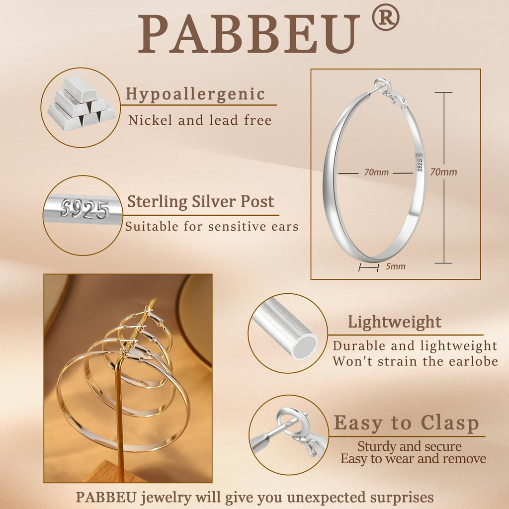 - 💕Exquisite Lightweight Large Hoop Earrings💕These big hoop earrings are very lightweight, will not weigh your ears down! comfortable to wear, super easy to wear and take off. Thin silver hoop earrings for women with flat plane surface design, 925 sterling silver hoop earrings for women are not only a great statement piece for any outfit. but also is more layered and more advanced when worn together with other silve hoop earrings for women sterling silver.