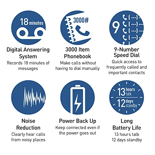 - POWERFUL PHONE BATTERY BACKUP : With a charged cordless handset in the base unit, Enjoy up to 12 hours of talk time when the power goes out; Number of Phone Lines 1