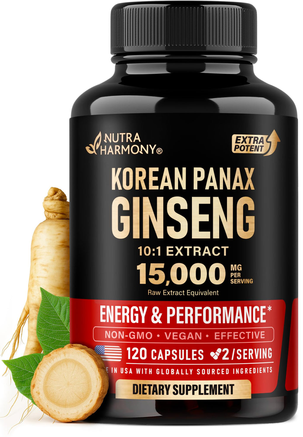 - Korean Panax Ginseng 15,000mg — Rooted in strength, energized for life: high-potency 10:1 extract delivering 10x the raw Ginseng root for maximum impact. Korean Panax Ginseng packed with concentrated ginsenosides to support energy, vitality, and overall well-being.