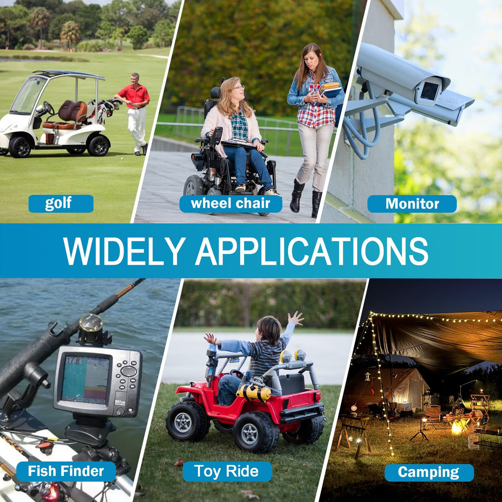 - 【Widely Used】Paoweric 12V 35Ah mini LiFePO4 battery can be used in the following fields: solar, kids scooters, power wheelchairs, fish finder, emergency light, outdoor camping, boathouses, lighting, UPS backup power supply, portable TV, etc.