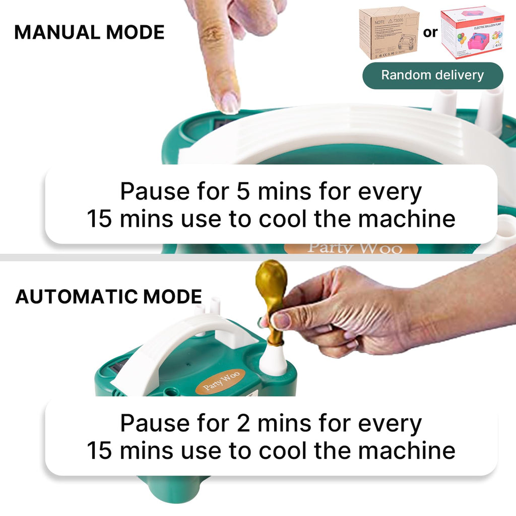 - ATTENTION & WARNING: To extend the life of the electric balloon pump and avoid excessive heat, please pause for 5 minutes for every 15 minutes use to cool the machine. This electric balloon pump is only suitable for ordinary latex balloons and foil balloon, not for long balloons (magic balloons). Please be aware that this electric balloon pump ONLY fills balloons with AIR - NOT HELIUM or HYDROGEN. Please DO NOT overfill the balloon. Be aware that there may be noise during use