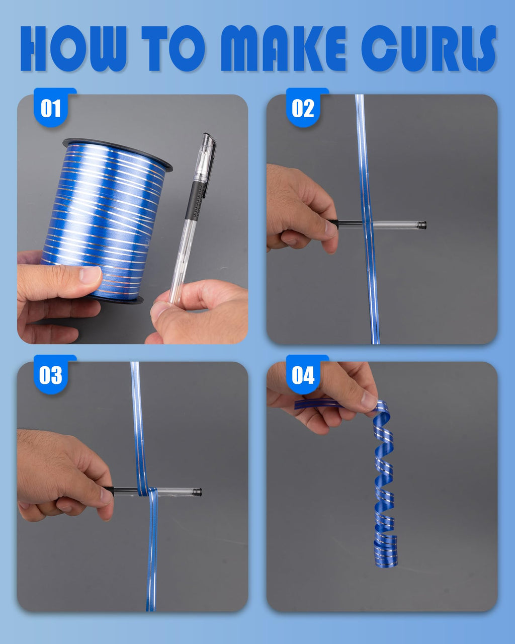 - Easy to Make Curls: You could use scissors to scratch the ribbon quickly to make it curled and divide into several small strings. Or you could use surround a round pen with the ribbon to make it curled. Ideal curling ribbon for decorations, ribbon for gift wrapping, ribbons for crafts