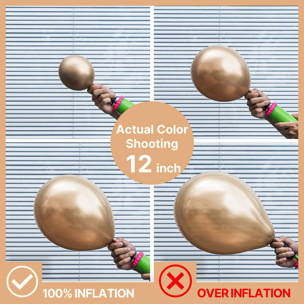 - ATTENTION & WARNING: Please DO NOT overfill the gold balloons and also avoid sunburn, overheat, pointed object and excessive friction. Control the amount of air inflated into balloon to achieve your ideal balloon size