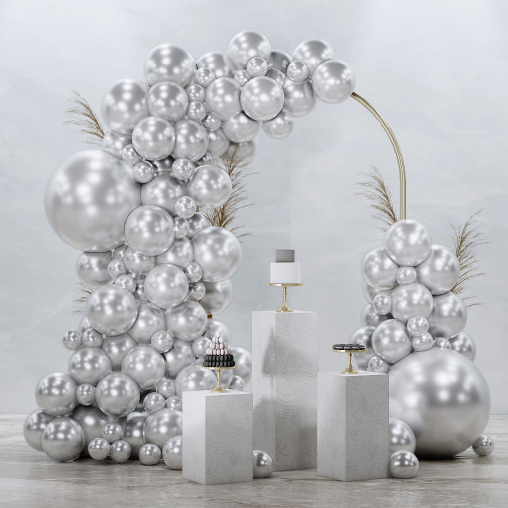 Details: PartyWoo Metallic Silver Balloons 90 pcs Different Sizes Pack of 18 12 10 5 Inch Chrome Silver Balloon Arch Kit Garland for Graduation New Year Wedding Birthday Party Decorations Silver-G102