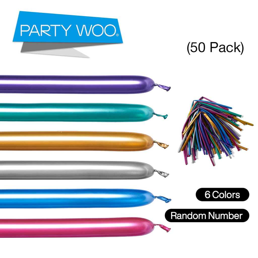 Details: Color: twist balloons gold, silver twisting balloons, twisty balloons blue, twisting balloons green, purple twist balloons, red twist balloons Material: Latex Balloons Package includes: 50 pcs 260Q long chrome balloons in 6 metallic colors (2-inches diameter, 60-inches long; the number of balloons of each color is relatively average. )