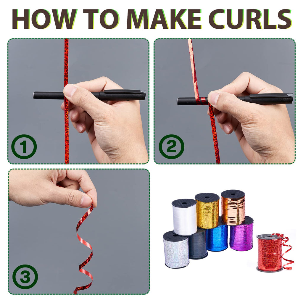 - Easy to Make Curls: You could use scissors to scratch the ribbon quickly to make it curled and divide into several small strings. Or you could use surround a round pen with the ribbon to make it curled. Ideal curling ribbon for decorations, ribbon for gift wrapping, ribbons for crafts