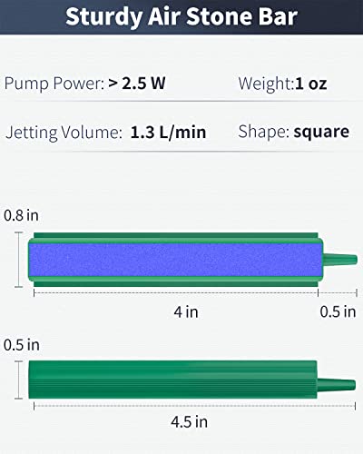 - Air Stone Bar: Each airstone measures 4.5" L x 0.8" W x 0.5" T and weighs 1 oz. Well-constructed for continual bubbling. Ideal for small buckets, fish tanks or aquariums.