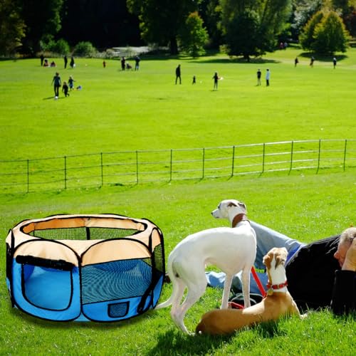 - Small Pop-Up Playpen Dog Cat Playpen Tent Size 29x29x16 Inch, Blue and Beige, 1 Pack Pet Playpen