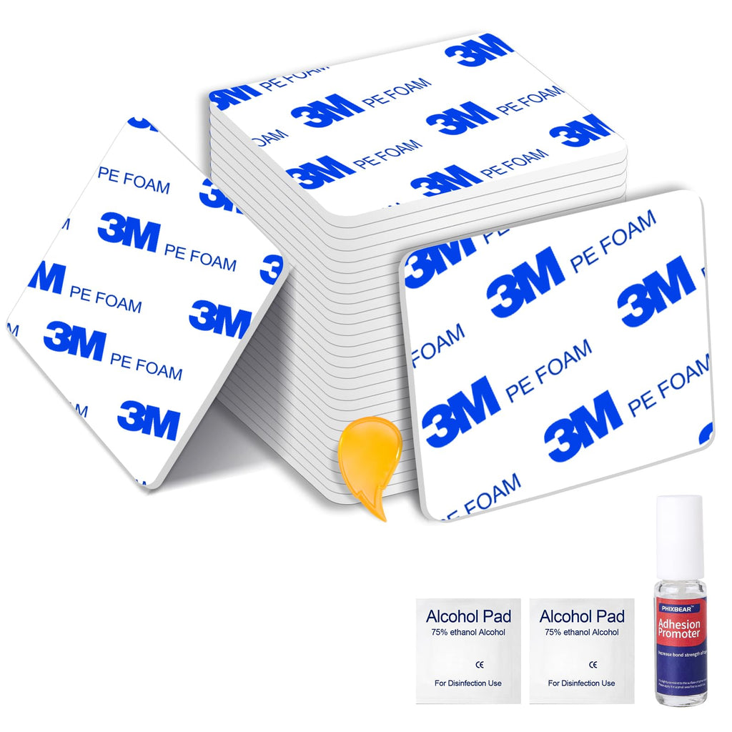 - 【Abundant Quantity】Contains 32 pieces Made of 3M PE Strong adhesive double-sided tape, square 1.69x2.15 Inch, to meet your wider use. And a bottle of adhesion promoter and two alcohol pads.