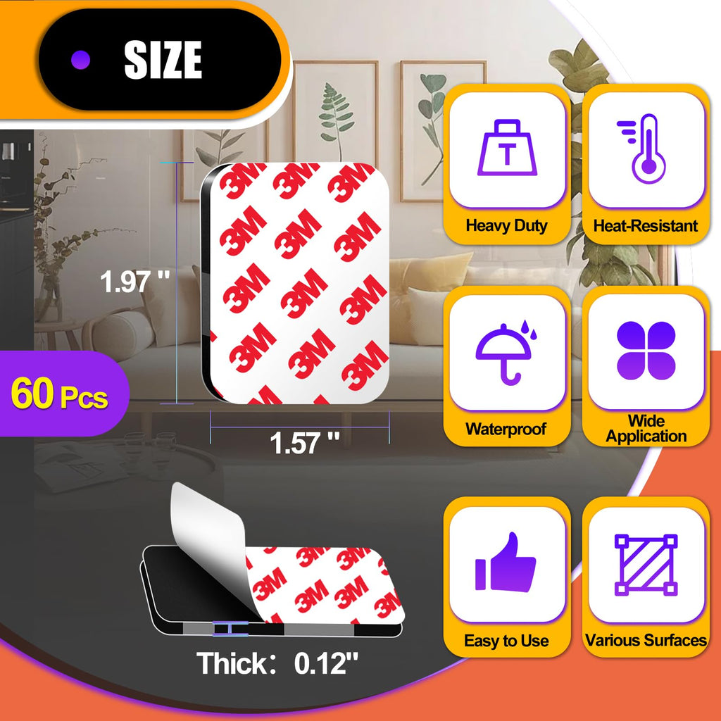- 【Super Adhesive Heavy Duty】This high-quality double sided adhesive pads, made of 3M-55236, provides a high-strength and long-term durable permanent bonding solution, ensuring firm and reliable fixation on various smooth surfaces such as metal, glass, and plastic. It is an ideal choice to replace rivets, screws, spot welding, and messy liquid adhesives.
