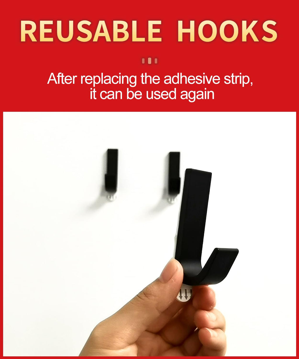 - 【REUSABLE HOOKS】All hooks are equipped with replaceable tape adhesive strips so you can take down and move your hooks as often as you like (without damaging surfaces) . Reusing them is as easy as applying a Refill Strip, so you can take down, move and reuse them again and again!