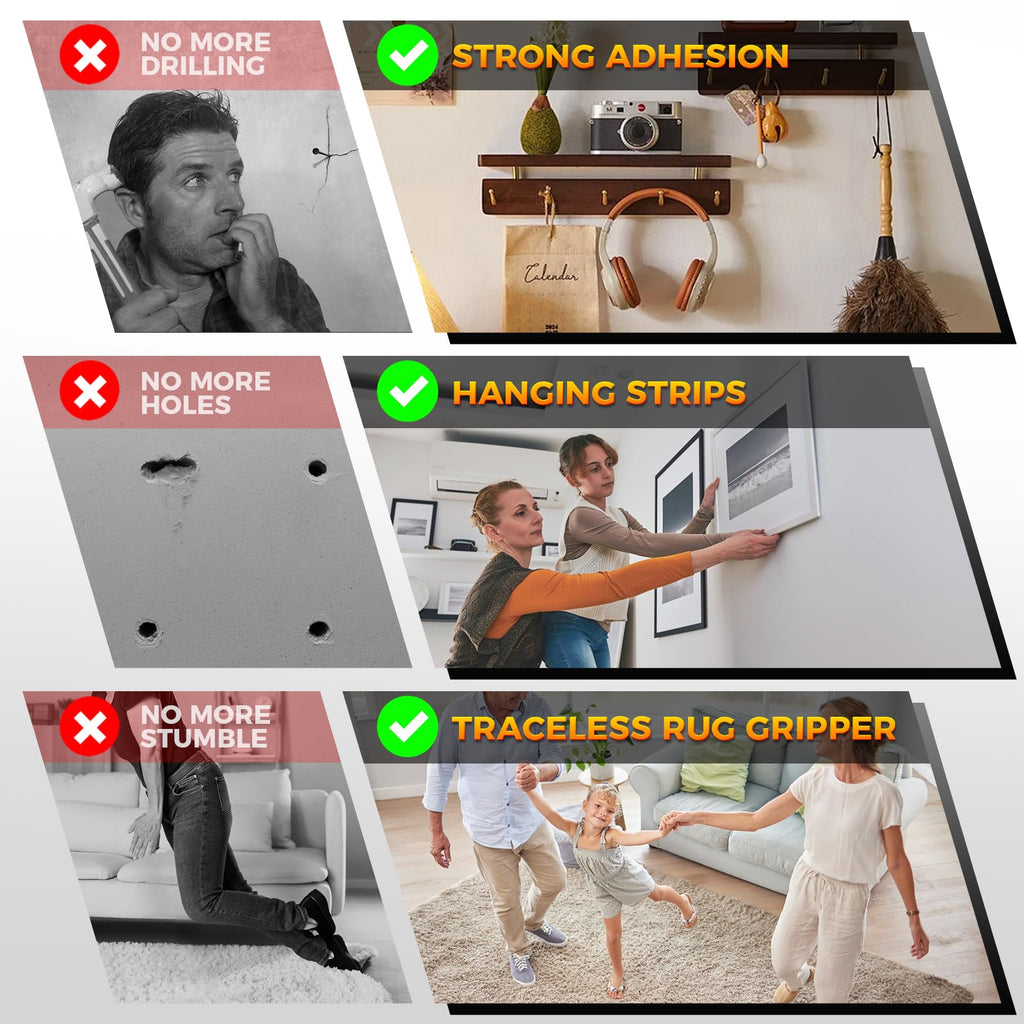 - 【Clean & Easy Removal】 Our heavy duty double sided tape doesn’t leave a mess when you peel it off,without the hassle of sticky marks. Definitely worth having around the house for quick fixes and little projects