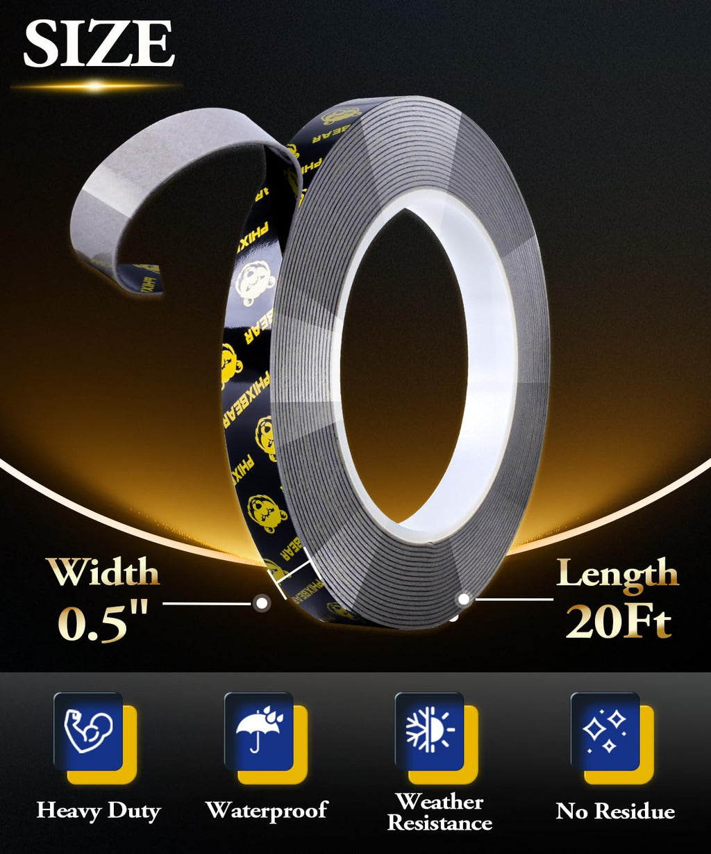 - 【Heavy-Duty】Heavy-duty double sided mounting tape, containing viscoelastic durable acrylic adhesive, has strong adhesion and can quickly, effectively, and reliably bond a variety of materials to achieve permanent bonding. It features high viscosity and long-term durability and can also fix objects invisibly. It is an ideal alternative to traditional mechanical fasteners and liquid adhesives
