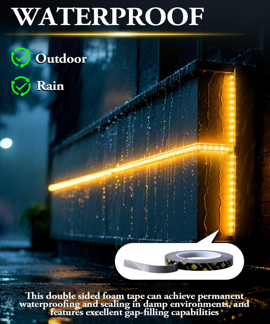 - 【Sealing & Waterproof】This double sided foam tape can achieve permanent waterproofing and sealing in damp environments, and features excellent gap-filling capabilities. It is particularly suitable for bathrooms, kitchens, and other indoor and outdoor damp areas, ensuring waterproofing effects and providing long-lasting sealing protection. Its design ensures long-term stability and reliability in various damp environments, making it an ideal choice for waterproofing and sealing.