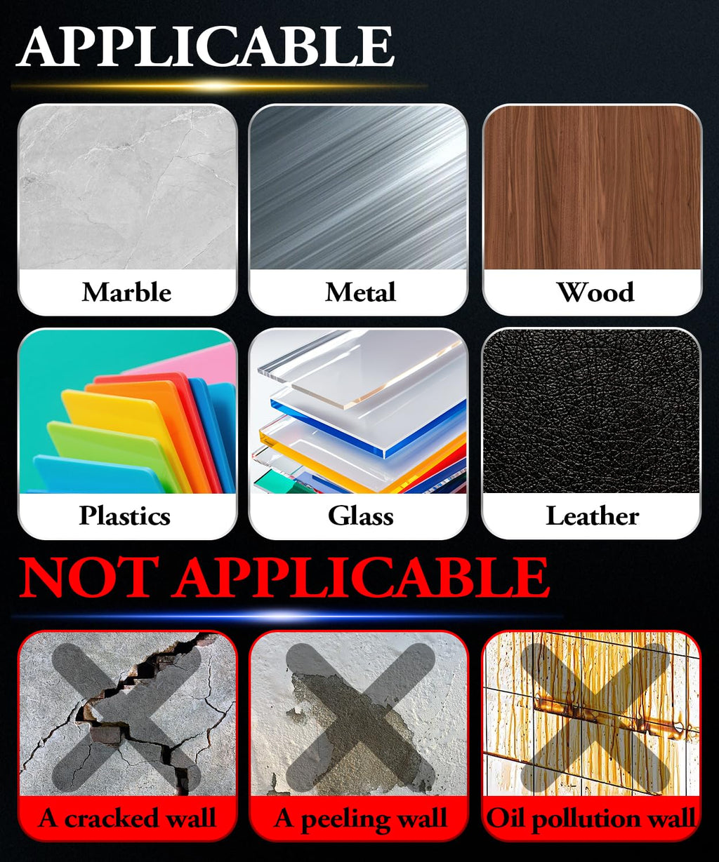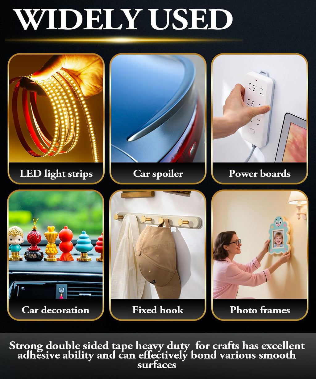 - 【Multi Purpose Adhesive Tape】Strong double sided tape heavy duty for crafts has excellent adhesive ability and can effectively bond various smooth surfaces, including marble, tiles, metal, logos, glass panels, LED panels, car spoilers, door edges, body side trims, ABS plastic and PVC door sills, wheel lips, etc. It is very suitable for installing car accessories, LED light strips, signs, photo frames, posters, DIY projects, power boards, and other home and office decorations, meeting various bonding needs.