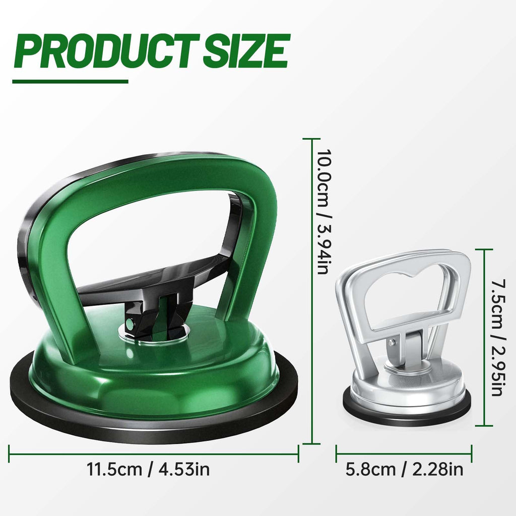 - 【Portable Strong Suction】The dent puller kit is designed for car body dent repair, including a 4.5-inch car dent puller and a 2.2-inch dent suction cup puller, specifically designed for direct body repair of car dents. The large suction cup puller has a maximum horizontal suction force of 110 pounds and a maximum vertical suction force of 77 pounds