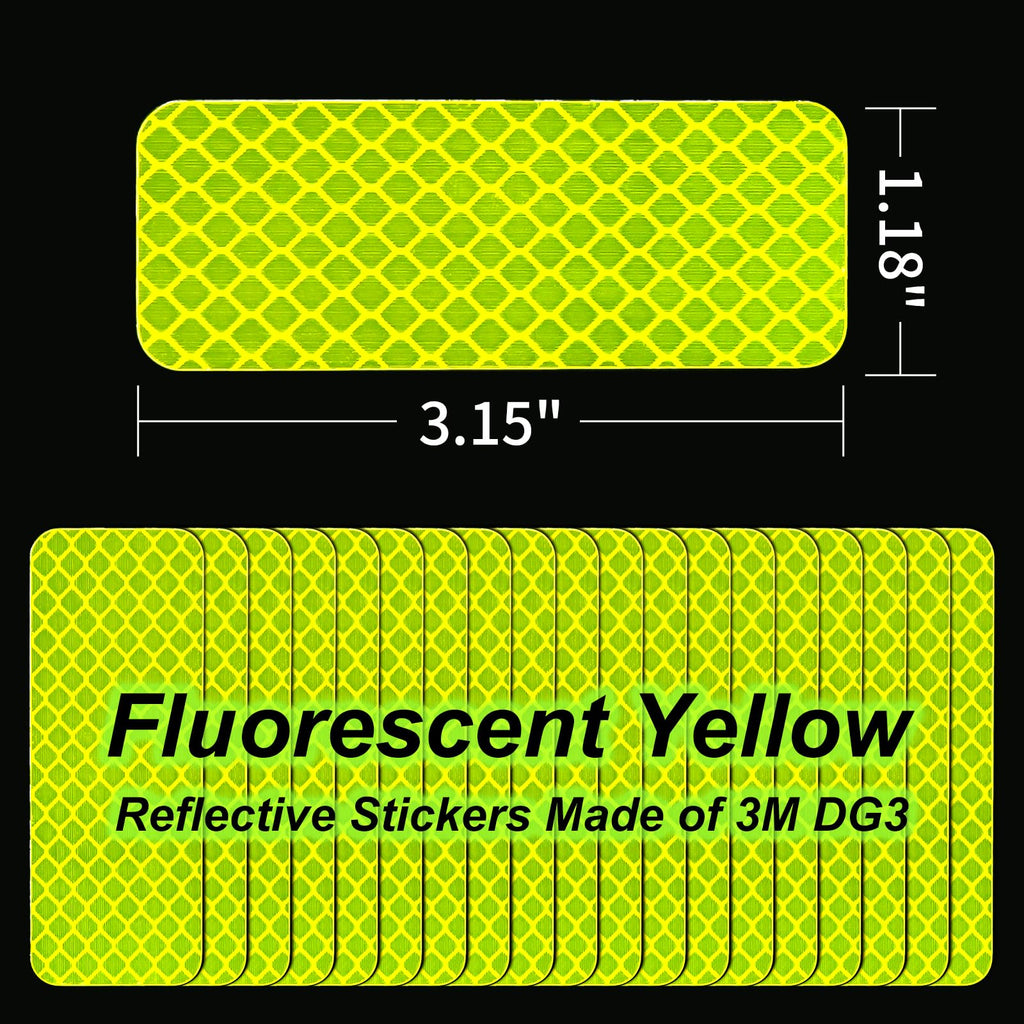 - YOU RECEIVED:20 Pcs Reflective Stickers Made of 3M DG3, Fluorescent Yellow-Green Outdoor Waterproof 3.15" X 1.18" + Two alcohol cleaning wipe.