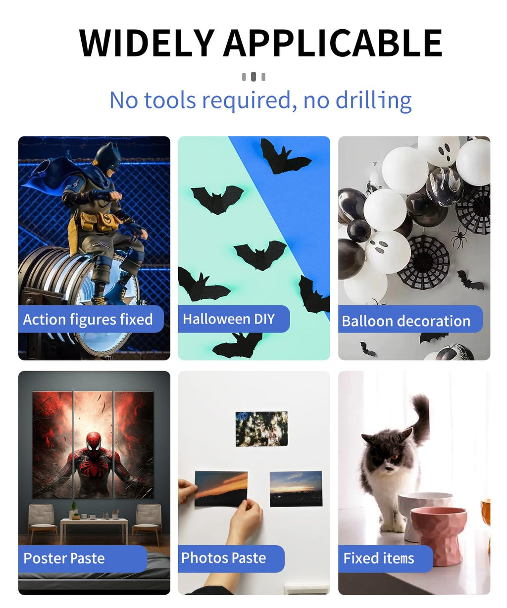 - 【Safe & Non-damaging Items】Our non-toxic sticky tack dots are acid, fume, and lignin free; it can be safely used on photos action figures surfaces, so you don't have to worry about damaging the surface of precious collections and photos. Perfect for protecting antiques and collectibles from falling and breaking.